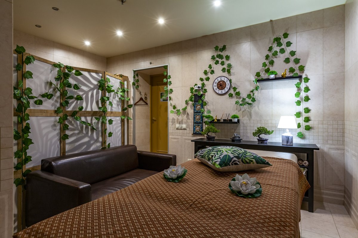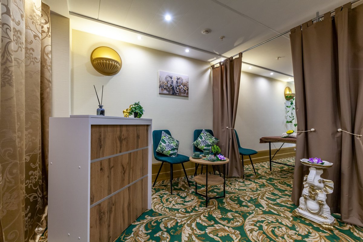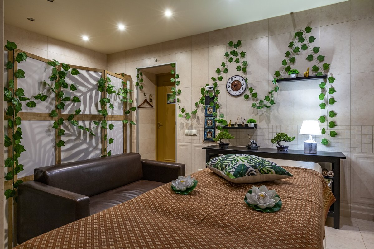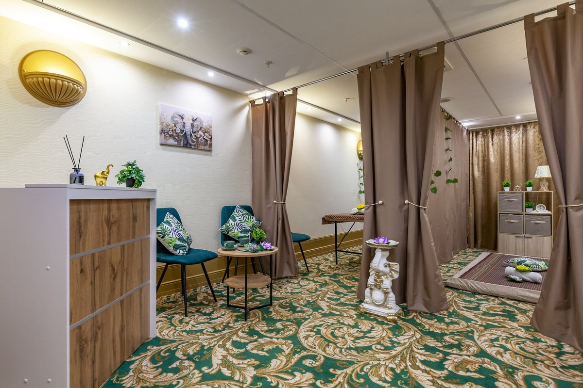 Здесь вы можете записаться на тайский массаж. По специфике воздействия на организм его часто сравнивают с йогой: он тоже делает суставы более подвижными, а тело гибким, и избавляет от телесных зажимов, вместе с тем заряжая энергией. Выполняя общий тайский массаж, мастера воздействуют на многочисленные точки на руках и ногах, которые отвечают за наше здоровье, и таким образом эффект от терапии чувствуется наиболее сильно.