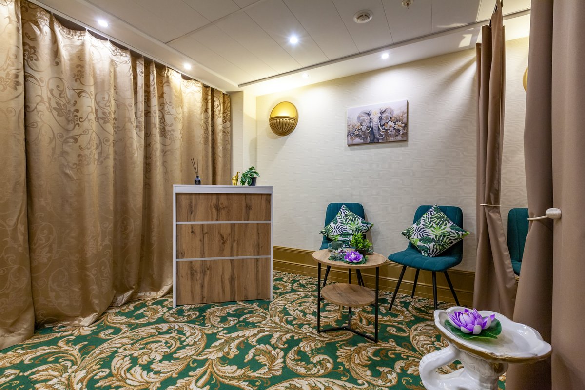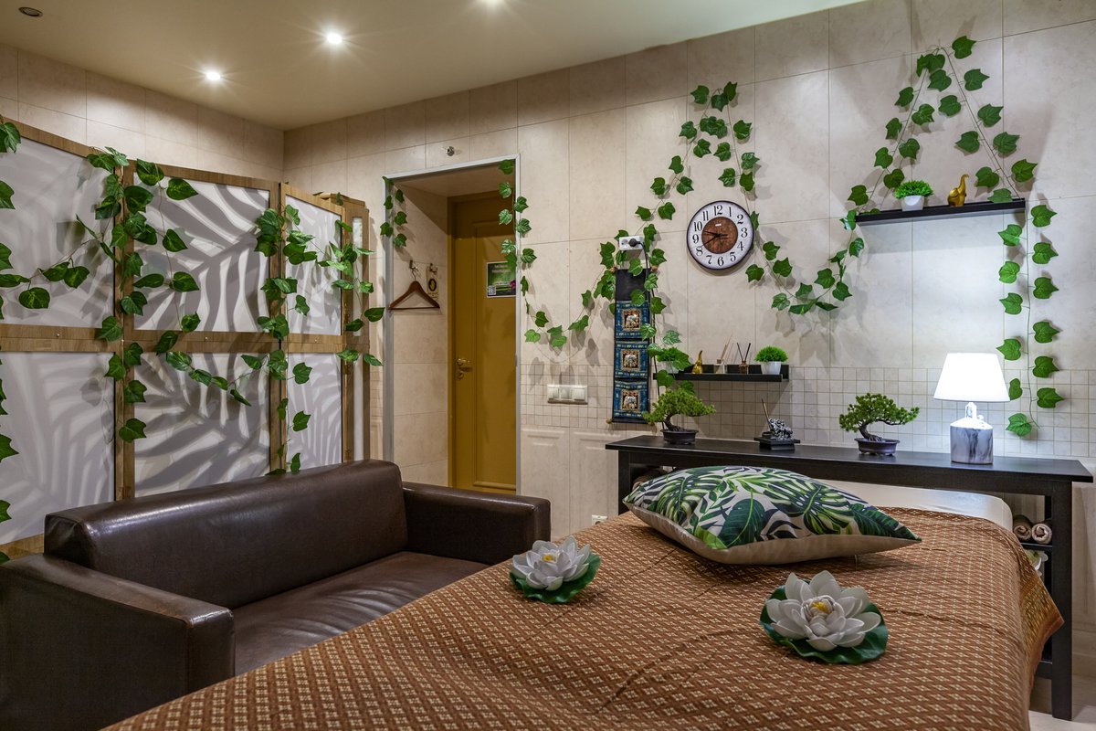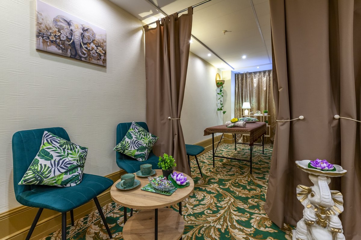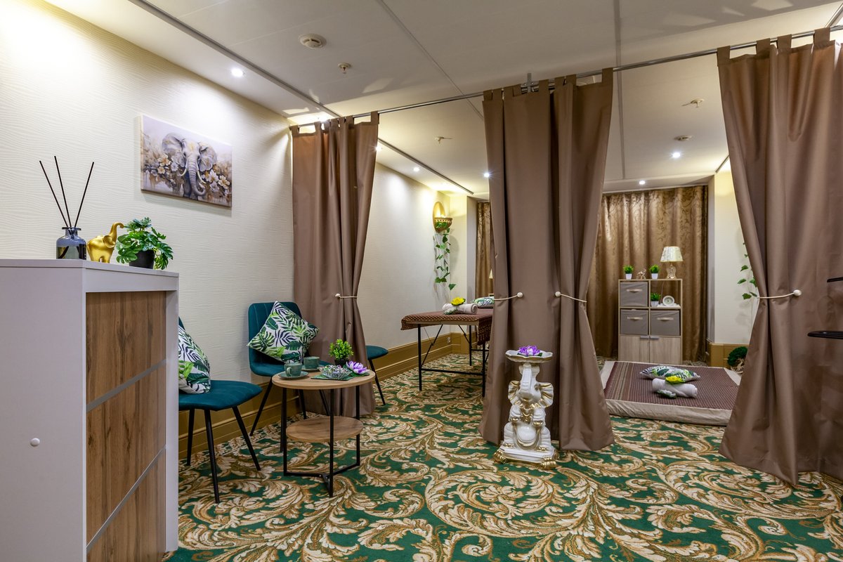 Здесь вы можете записаться на тайский массаж. По специфике воздействия на организм его часто сравнивают с йогой: он тоже делает суставы более подвижными, а тело гибким, и избавляет от телесных зажимов, вместе с тем заряжая энергией. Выполняя общий тайский массаж, мастера воздействуют на многочисленные точки на руках и ногах, которые отвечают за наше здоровье, и таким образом эффект от терапии чувствуется наиболее сильно.